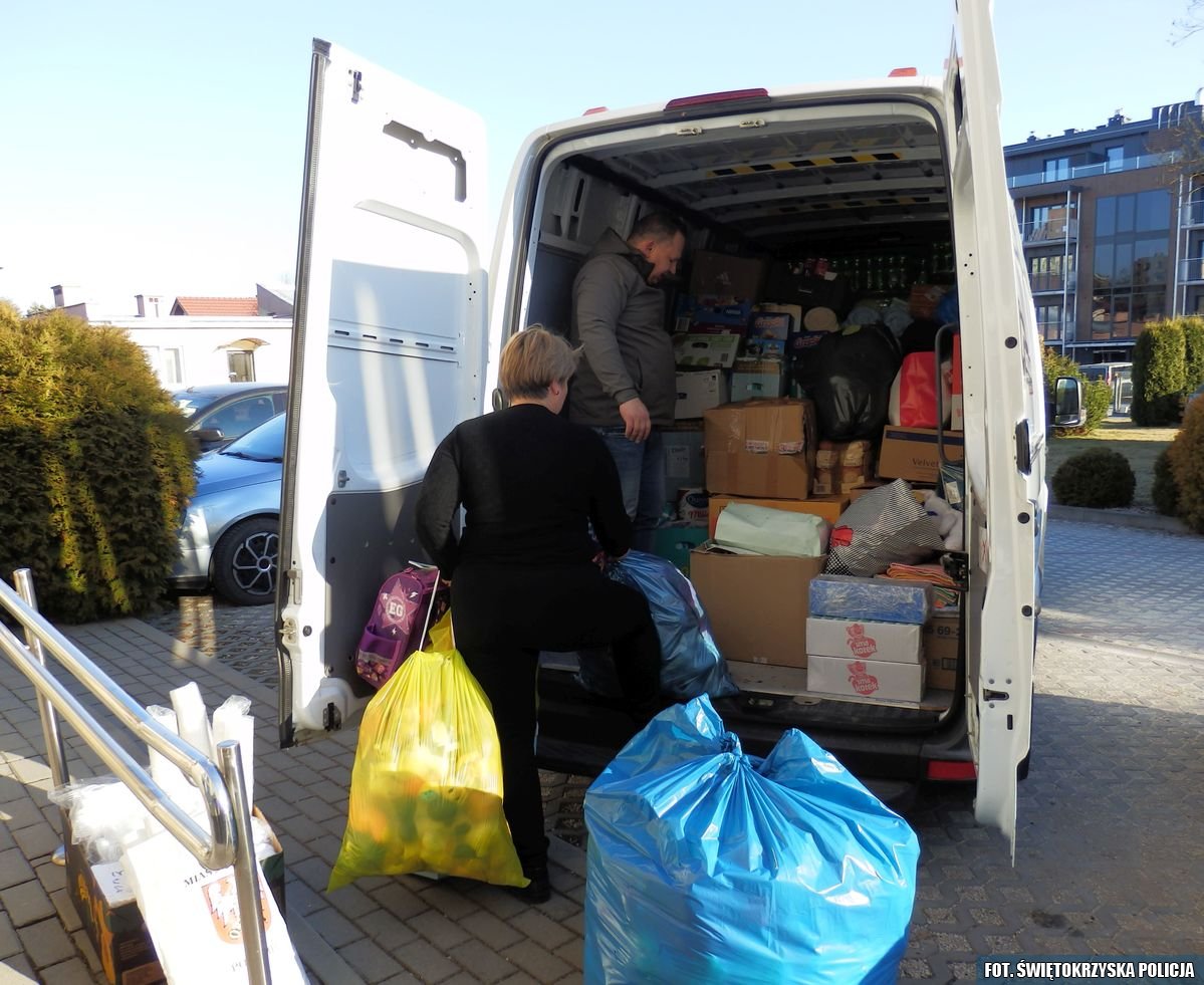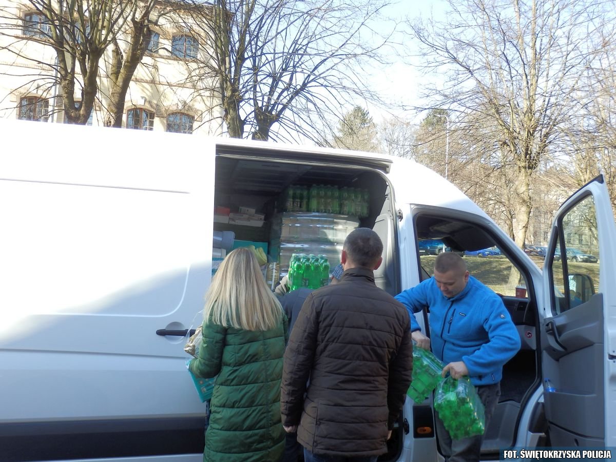 Policjanci z buskiej komendy zainicjowali i koordynowali akcję pomocy Ukraińcom. Zgromadzili artykuły potrzebne do codziennego funkcjonowania, które zostały przekazane przez uczniów I Liceum Ogólnokształcącego w Busku – Zdrój, uczniów Szkoły Podstawowej nr 3 w Busku – Zdroju, uczniów Zespołu Placówek Oświatowych w Dobrowodzie, pracowników Powiatowej Stacji Sanitarno – Epidemiologicznej w Busku – Zdroju, a także buskich przedsiębiorców. Darczyńcy ofiarowali między innymi pieluchy, artykuły higieniczne, lekarstwa, środki opatrunkowe, żywność o długim terminie przydatności do spożycia, soki, musy owocowe, wodę mineralną oraz maskotki dla dzieci. W miniony piątek, buscy policjanci poświęcając swój czas wolny pojechali do Przemyśla. Tam przekazali dary przedstawicielowi stowarzyszenia rodzin policyjnych, które następnie trafią do Lwowa. Na miejscu zostaną przekazane osobom najbardziej potrzebującym. Następnie policjanci pojechali na granicę Polsko – Ukraińską do Medyki. W miejscowej szkole, w punkcie pomocy dla uchodźców pozostawili maskotki. Mają być przeznaczone dla dzieci, które wraz z rodzicami szukają schronienia w naszym kraju.