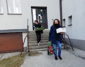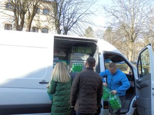 Uczniowie I LO w Busku – Zdroju przekazujący dary dla Ukraińców -