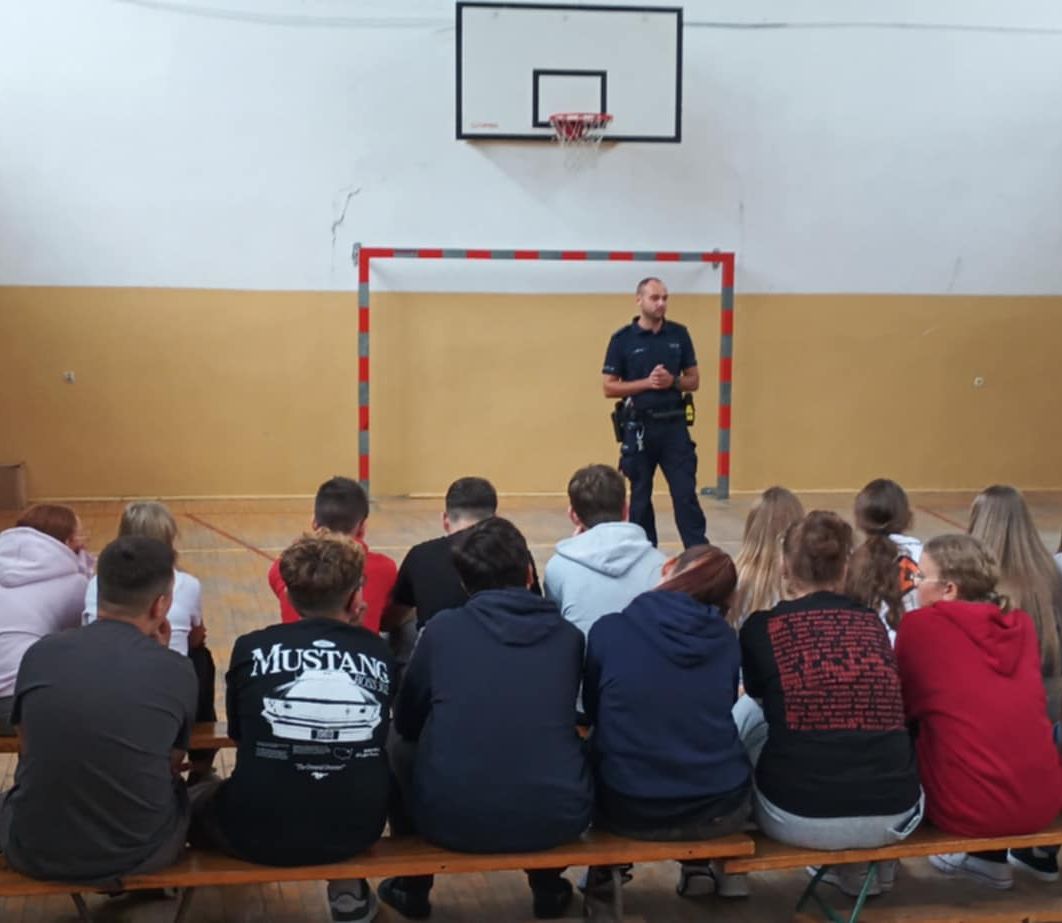 W związku z rozpoczęciem nowego roku szkolnego dzielnicowy mł. asp. Adrian Molasy z Komisariatu Policji w Stopnicy odwiedził uczniów szkoły w Tuczępach. Spotkanie miało na celu poprawę bezpieczeństwa najmłodszych użytkowników dróg. Funkcjonariusz przypomniał uczniom najważniejsze zasady ruchu drogowego, w tym dotyczące poruszania się hulajnogami. Omówił, dlaczego na drugą stronę jezdni należy przejść korzystając z przejścia dla pieszych, którą stroną drogi iść, jeżeli nie ma chodnika i dlaczego przepisy ruchu drogowego są tak ważne. Uświadomił uczniom, że używanie elementów odblaskowych podczas poruszania się po drogach po zmierzchu jest ważne dla ich bezpieczeństwa. Osoby korzystające z Internetu przestrzegał przed pochopnym podawaniem swoich danych osobowych oraz o rozwagę podczas publikowania swoich zdjęć w „sieci”.