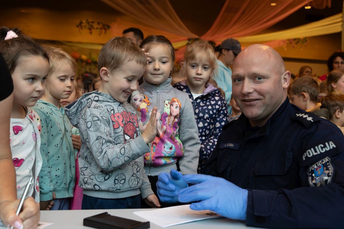 Dziś w Europejskim Centrum Bajki w Pacanowie odbyło się niezwykłe wydarzenie zorganizowane dla dzieci z oddziałów przedszkolnych oraz uczniów klas I-III pod nazwą „Bezpiecznie z Koziołkiem Matołkiem”. Był to dzień pełen emocji i zdobywania praktycznej wiedzy poprzez zabawę. Nauka zasad bezpieczeństwa nie musi być nudna i udowodnili to świętokrzyscy policjanci. Do Pacanowa stawili się mundurowi z Buska – Zdroju, Stopnicy, Kielc, a także maskotka „Koziołek Spoko”. Funkcjonariusze przestawili krótką prelekcję na temat jak należy się zachować, aby bezpiecznie pokonać drogę do i ze szkoły. Z pogadance aktywnie uczestniczył „Koziołek Spoko”. Technik kryminalistyki przeprowadził warsztaty z metod zabezpieczania śladów daktyloskopijnych, a chętni mogli na pamiątkę zabrać odciski swoich dłoni do domu. Na policyjnym stoisku profilaktycznym można było dowiedzieć się o przepisach ruchu dotyczących hulajnóg. Na zewnątrz, przed budynkiem centrum bajki wystawione były do oglądania radiowozy wykorzystywane do patrolowania dróg. Każdy mógł usiąść za kierownicą, a nawet włączyć sygnały świetlne i dźwiękowe.