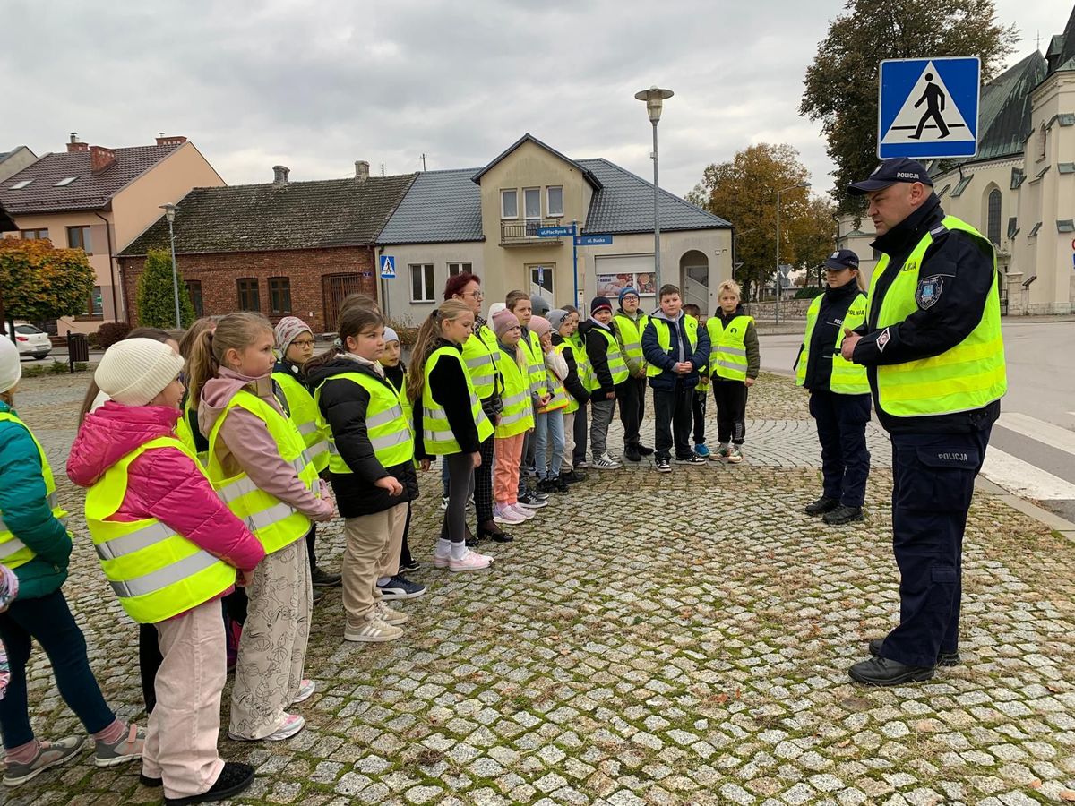 Dziś dzielnicowi st. sierż. Sylwia Kluźniak i sierż. szt. Bartłomiej Sagan z Komisariatu Policji w Solcu – Zdroju spotkali się z uczniami klas III szkoły w Nowym Korczynie. Tematem pogadanki było bezpieczeństwo w ruchu drogowym. Policjanci poszli z dziećmi na spacer po mieście, podczas którego poznawali przepisy ruchu drogowego dotyczące pieszych. Trzecioklasiści nauczyli się prawidłowo i bezpiecznie przechodzić przez jezdnię na drugą stronę ulicy. Dowiedzieli się jaki sygnał świetlny zezwala na wejście na przejście dla pieszych, a jaki każe jeszcze trochę poczekać. Mundurowi omówili znaczenie najważniejszych znaków drogowych oraz zachęcali do korzystania z elementów odblaskowych podczas spacerów. Następnie wszyscy poszli do Klubu Seniora, gdzie z jego uczestnikami dalej kontynuowali pogadankę o bezpieczeństwie.