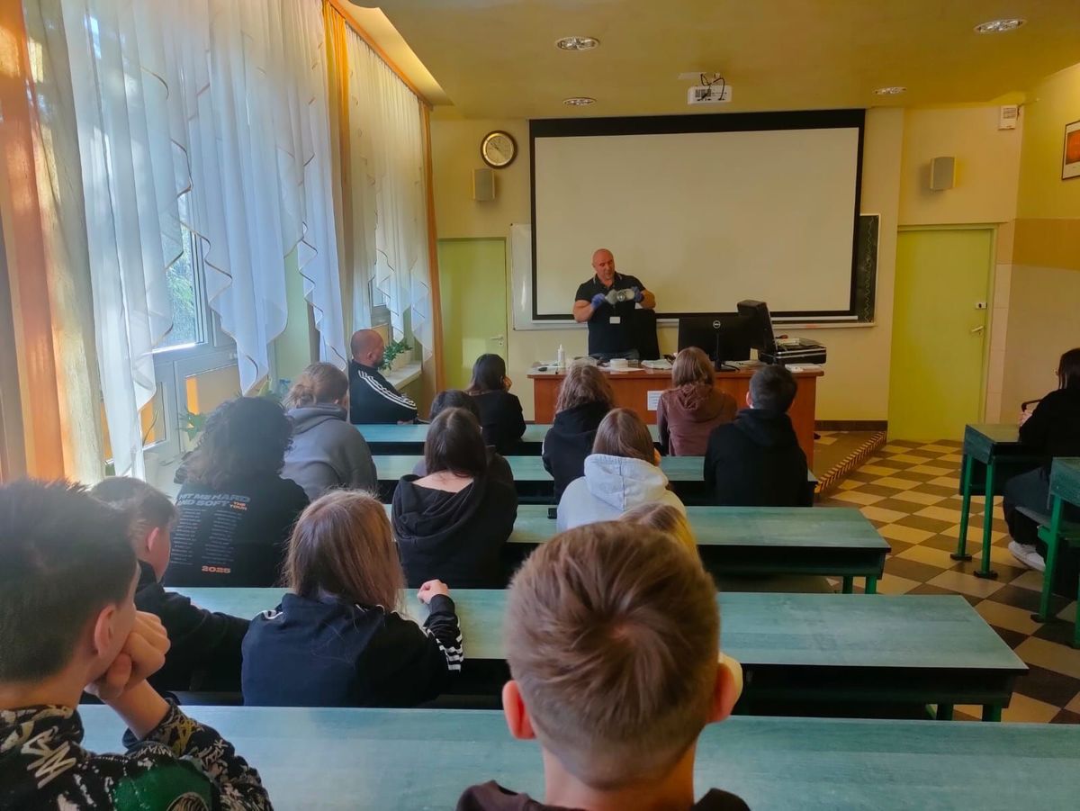 Uczniów Zespołu Szkół Ponadpodstawowych w Busku – Zdroju wczoraj w ramach promowania rekrutacji do służby w Policji odwiedzili policjanci. W trakcie spotkania przybliżyli specyfikę pracy w Policji, a także przedstawili młodzieży perspektywy rozwoju zawodowego i stabilizacji, jakie oferuje służba w tej formacji. Szczegółowo omówili procedurę kwalifikacyjną. Uczniowie dowiedzieli się, jakie formalne wymogi musi spełnić kandydat, jakie są etapy rekrutacji oraz jakie dokumenty należy złożyć.
