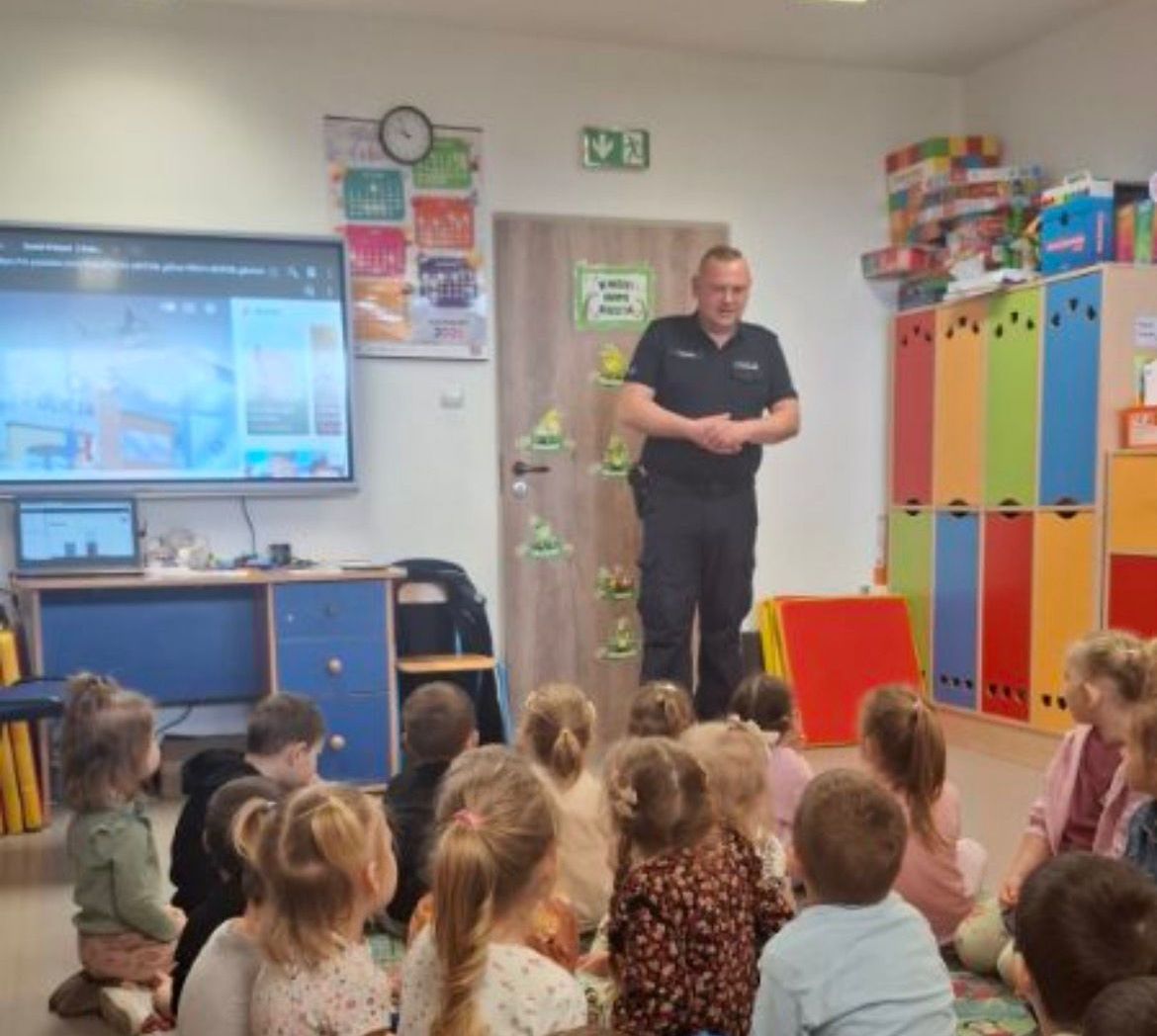 Dzielnicowy z Posterunku Policji w Wiślicy sierż. szt. Bartłomiej Sagan w miniony czwartek odwiedził dzieci z miejscowego przedszkola. Podczas spotkania, mundurowy opowiadał o swojej codziennej służbie. Mówił czym zajmują się policjanci prewencji, ruchu drogowego, kryminalni czy technicy kryminalistyki. Wyświetlił film profilaktyczny przystosowany do małych odbiorców. Odpowiadał na pytania związane ze służbą w Policji. W dalszej części spotkania omówił zasady bezpiecznego poruszania się po drogach przez pieszych, przypomniał najważniejsze przepisy, a także radził, jak wybrać bezpieczne miejsce do zabawy, zarówno w domu jak też na podwórku.